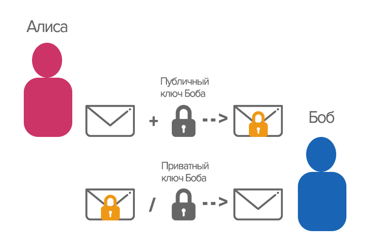 - Выполняется пересылка зашифрованных данных по любым не надёжным каналам или просто выполняется сохранение на жёсткий диск или флешку.